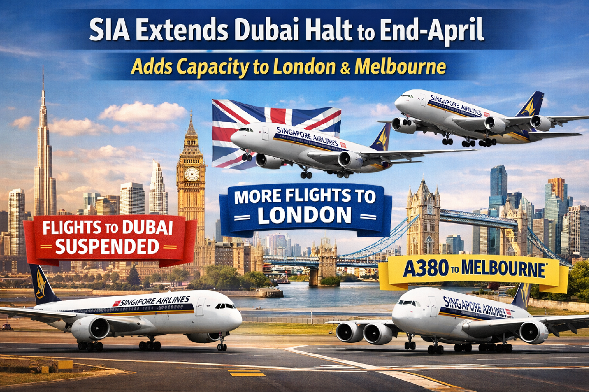 Singapore Airlines has extended the suspension of its Singapore–Dubai services until the end of April 2026, citing escalating geopolitical tensions in the Middle East.